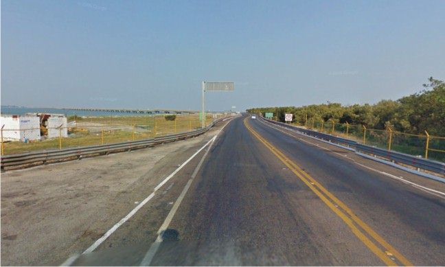 As you approach Ciudad del Carmen there is a very long toll bridge that takes you across a wide inlet.