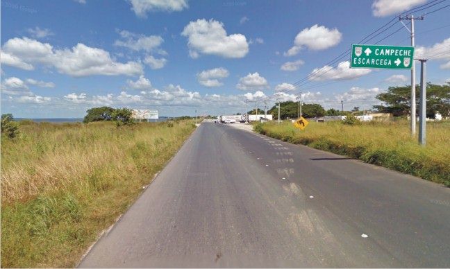 This section of the drive is a bit hilly but quite picturesque and the 2 lane road is in great shape. As you approach Champoton you will need to make a left towards the coast. There are a couple of opportunities to do this, but the way I remember which street to take is that at the outskirts of town the 2 lane highway becomes a divided 4 lane street with a center median. Turn left at the intersection, with a statue in the center of a traffic circle where the median begins. Once you arrive at the coast road turn right and follow it through town.If you miss the original turn, you can continue on Calle 10 and then turn left at Calle 33 as shown, however that route takes you through some narrow streets in the heart of town.
